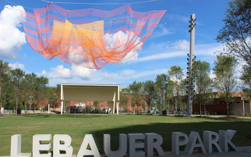 The art story that dominated 2016 in the Triad now dominates a section of downtown Greensboro’s skyline: the iridescent netting of sculptor Janet Echelman’s “Where We Met,” hovering over the performance space at LeBauer Park, that city’s newest downtown public space.
