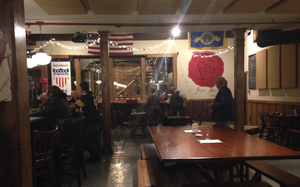 The bartender graciously obliged my request for samples before I settled on the Impending Grace imperial stout, coming in at 10 percent ABV and served as a $5 half pour. The brown foam reminded me of a cupcake with icing, flavor decidedly cocoa. This dark brew comes in second for me this season — after a bourbon barrel-aged imperial porter from Charlotte’s Unknown Brewing, which I discovered at the Beer Growler in Winston-Salem before Christmas.[pullquote]Visit Four Saints Brewing at 218 S. Fayetteville St. in downtown Asheboro. Find it on Facebook, Twitter @FourSaintsBrew or Instagram @foursaintbrewing.[/pullquote]