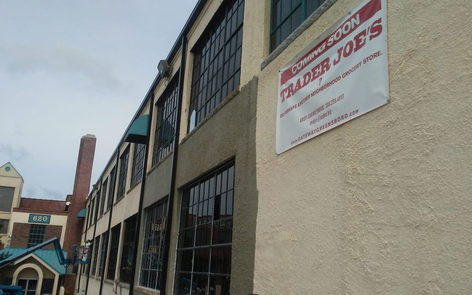 Listen: I know the sign on the building at the corner of South Elm and Lewis streets says “Trader Joe’s” on it, and I know that end of downtown Greensboro has seen a lot of changes these last few years that it’s conceivable that the district is getting attention from big corporations.