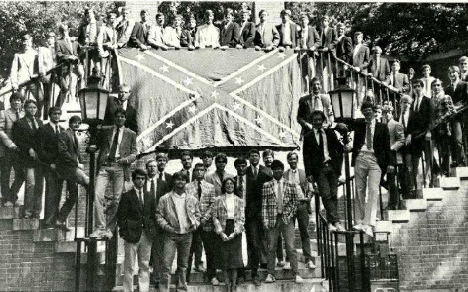 Kappa Alpha Order, he appeared in yearbook photos with a large Confederate flag