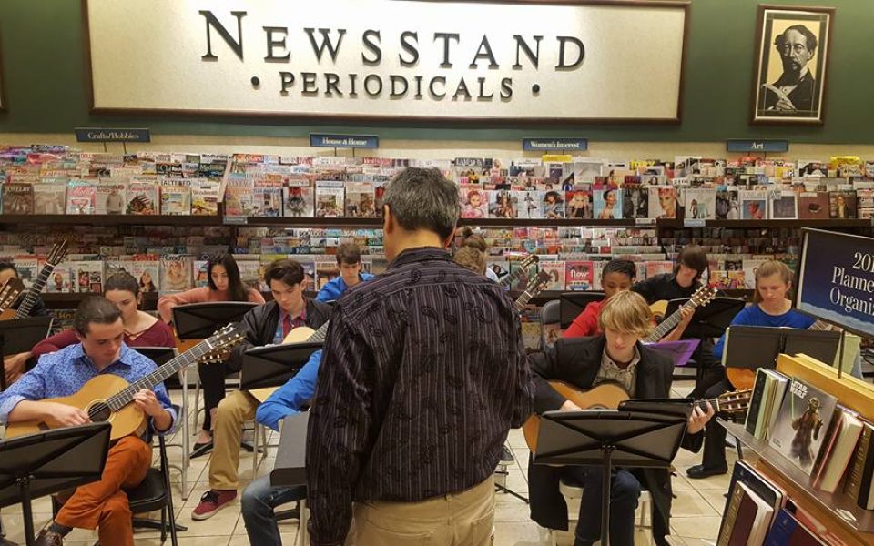 They moved the Christmas performance area at the Friendly Center Barnes & Noble this year, away from the front window and back by the wall of periodicals, which somehow still exists in this increasingly digital world.