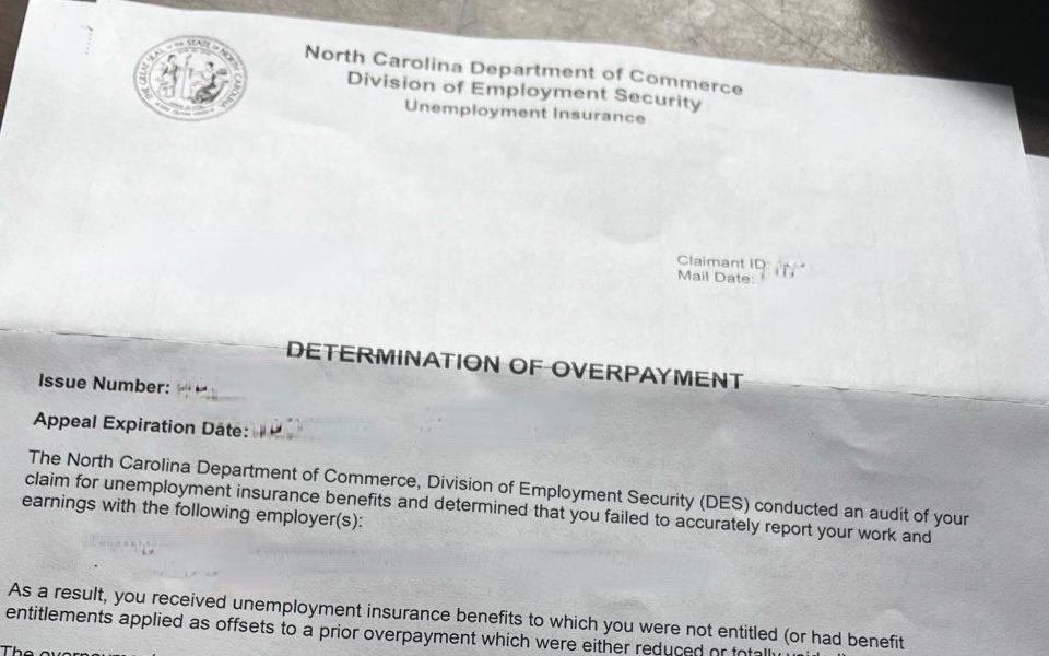 Information on how to appeal a “Determination of Overpayment” claim can be found at des.nc.gov.