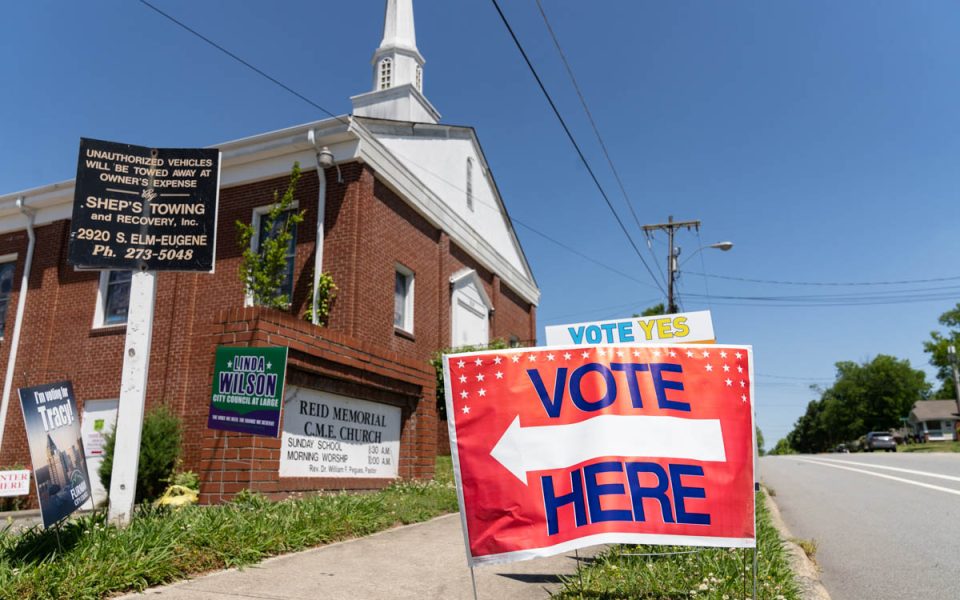 Featured photo: Primary Election Day at Reid Memorial C.M.E. Church on Bennett St. on May 17, 2022 (photo by Carolyn de Berry)