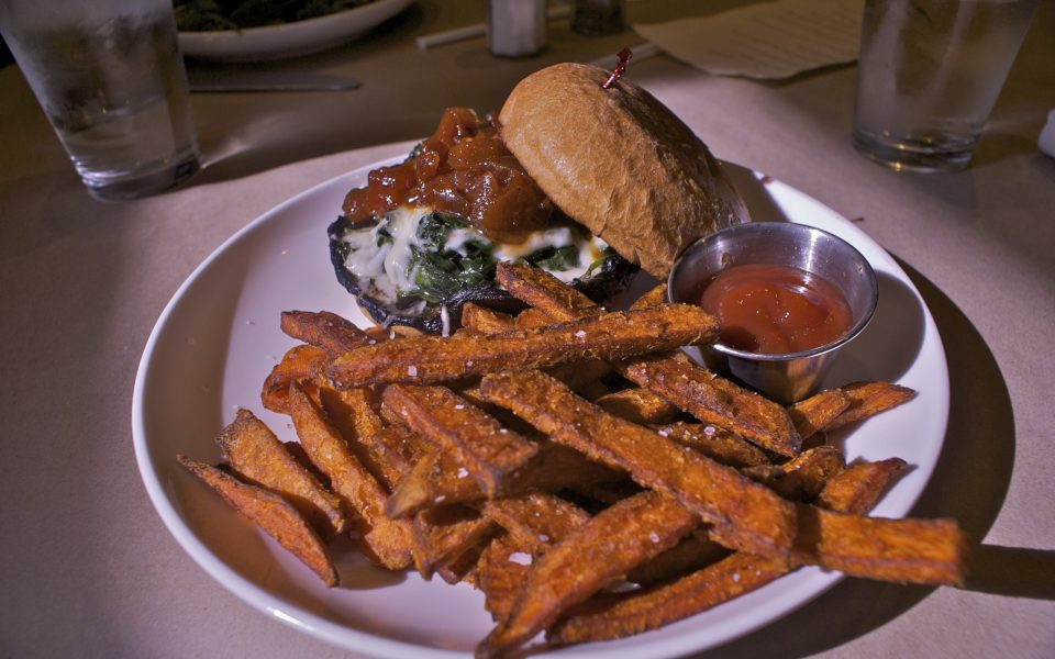 But with a grilled portobella burger on the menu, served with sautéed spinach, mozzarella and a generous clump of tomato chutney, I made the right call to continue exploring. The juiciness of the mushroom cap mixed with the savory greens, melted cheese and the jam-like chutney to create a delicious concoction, complemented well by salted sweet potato fries.