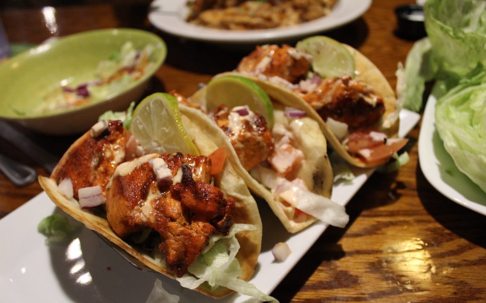 I’d order the chicken tikka masala entrée, the delicious lettuce-wrap appetizer with minced chicken and Thai chili sauce or one of the paninis if I came here with Kacie on a date. If I came to watch a game I’d go with the wings, the Southern Comfort burger with bacon and pimiento cheese and fried green tomato that our server said is her favorite menu item, or the Wrangler Chicken in barbecue sauce and served with bacon.