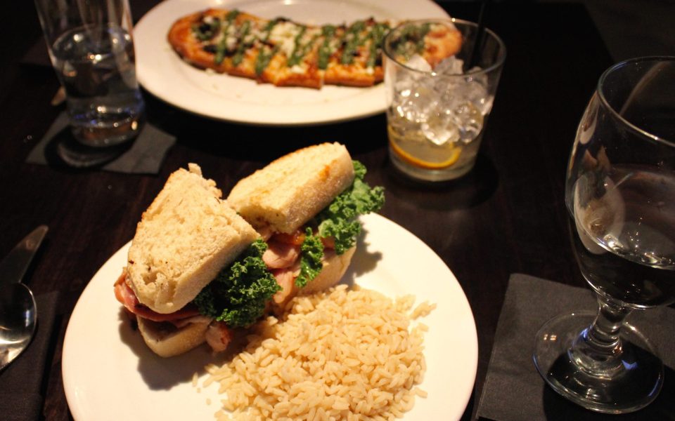 Erin and I kept it simpler, ordering cheaper options including the dried tomato and pesto flatbread and the porchetta sandwich with kale, tomato and pear & jalapeño jam to hold down the cost. Both were tasty, especially the pork sandwich on sourdough, though given its size, I was glad I ordered the Sizzling Tuna as well.