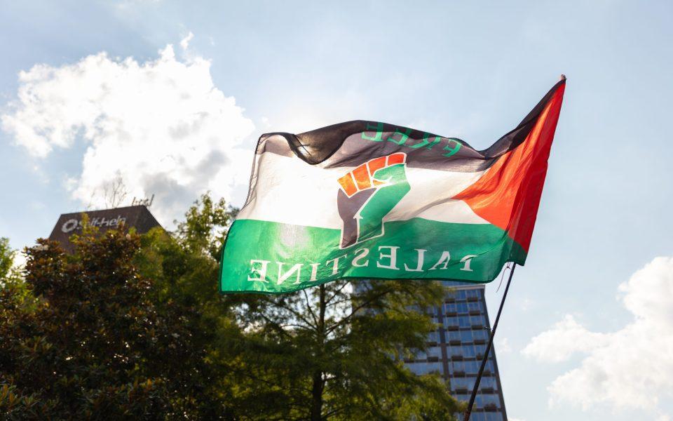 Featured photo: A pro-Palestine supporter holds a Palestinian flag in downtown Greensboro on Aug. 10. (photo by Brandon Demery)
