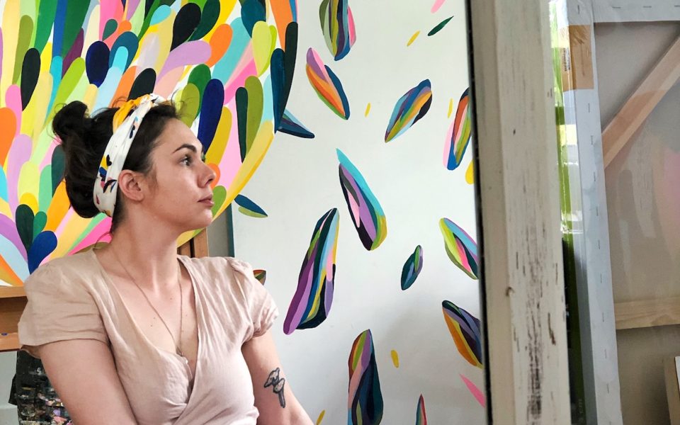 “I’m just trying to be a happy little artist with my rainbow palette,” she says. “It’s who I am. If I’m not creating some sort of abstract reality or playing with colors, I don’t know who I am.”