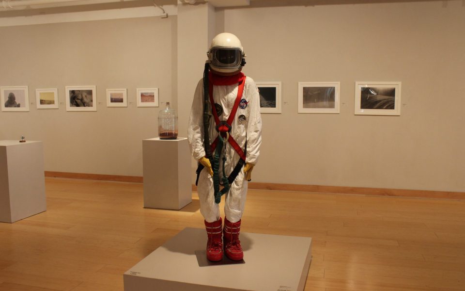 Featured photo: Christine Zuercher’s astronaut-type suit stands in GreenHill as part of LEAP. (photo by Sayaka Matsuoka)