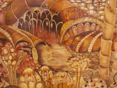 An outer space fantasy world in mixed-media
