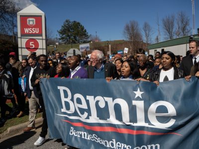 Sanders fires up multiracial, working-class crowd for early voting at WSSU