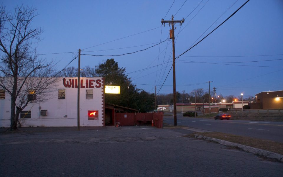 I almost turned around when I reached the door and realized that Willie’s Honky Tonk is the kind of place where you need a membership key. A fenced patio obscures the heavy-duty black door from the street in this semi-industrial part of Winston-Salem’s fringe, and it wasn’t until I stood in front of it that I read the large “Members only” sign painted near the pronounced lock on the windowless door. But before I could turn around, I heard a woman’s voice inside say, “There’s somebody outside.”