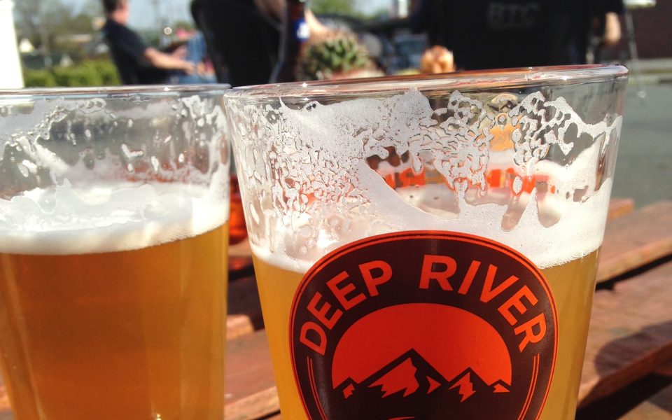 Having chosen the two Deep River IPAs and swapping sips to try each other’s, my husband and I stumbled back into the unseasonably warm weather. I was amazed that of all the patio seating, no one had chosen the loveseats made out of stained pallet wood, which had comfy green cushions like you’d find in a home improvement store. Echoes from the nearby Dash stadium wafted over, and the sun shone hot and high. A Tibetan gong-sounding chime softly bonged behind me at intervals, and I realized how “Zen chill” I felt before our new friend pointed it out.