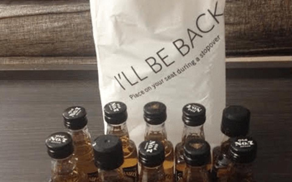 As we started to descend over Ohio, James asked if I liked whiskey. I assured him I’d had more than enough — probably four or five drinks at this point, and we’re only talking about a few hour flight — but he persisted. When I said yes, he filled up a plastic bag with fistfuls of airplane bottles and wished me a happy Thanksgiving.