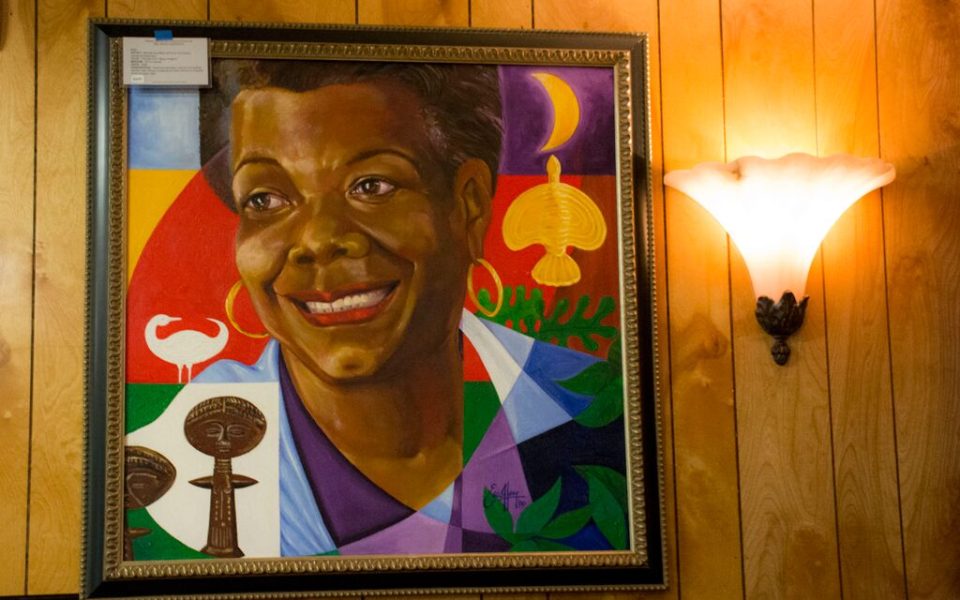 “I love that one because that’s how she smiled,” said Laster, who knew Angelou from her visits to his fine arts store in town, where she would come and sometimes pass a couple hours.