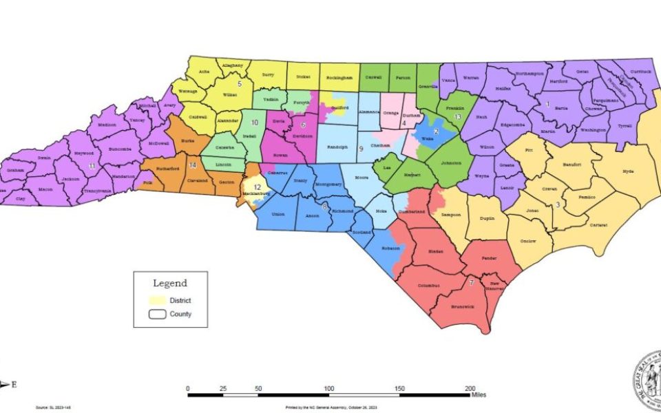 Featured photo: The new NC congressional map creates 10 Republican districts, 3 Democratic districts and a district that is trending Republican (Source: NCGA)