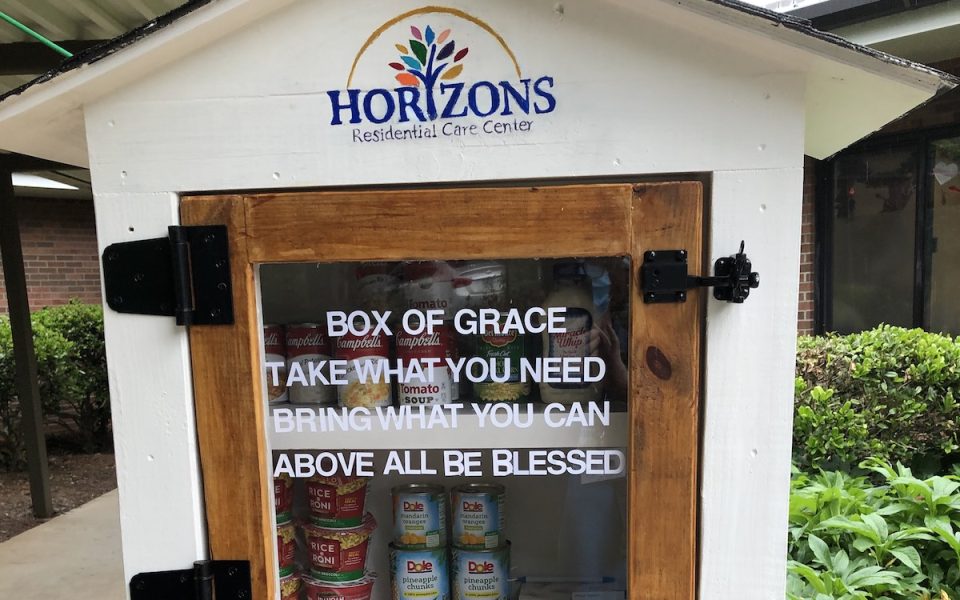 “We started these blessing boxes when this pandemic started for our employees so they could benefit from them,” says Cindy Arrington, director of resource development and communications at Horizons Residential Care Center.