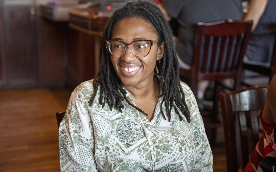 Featured photo: Tasia Wilson, the organizer of the Brown Skin Brunchin’ at Sweet Potatoes in Winston Salem on June 11, 2022. (photo by Juliet Coen)