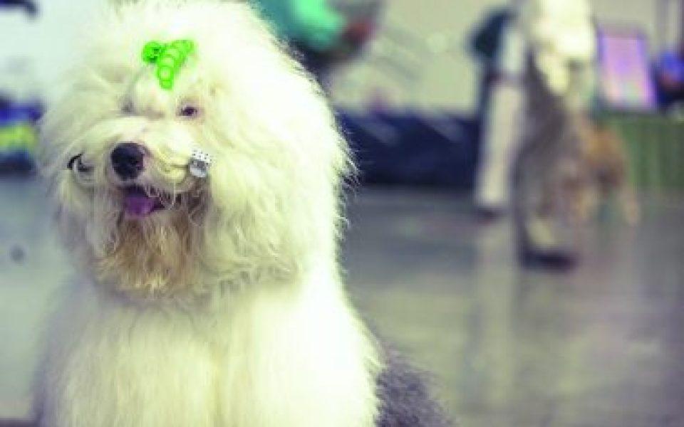 At the table next to them, Clute works on a black Russian terrier named Vincent, who is due in the ring in eight minutes, with a hand-dryer and a spiky brush. He’s a large and dignified animal, with thick, coarse fur that droops from his snout like a moustache and covers his eyes in thin forelocks.