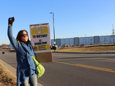 Activists protest at Kernersville Amazon facility to support unionization efforts in Alabama