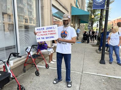 Crystal Towers residents protest ongoing living conditions, repair delays outside of the Housing Authority of Winston-Salem offices