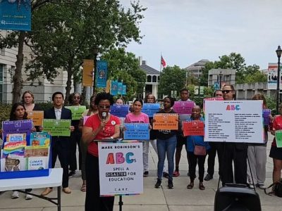 Progressive coalition rallies to decry Lt. Gov. Robinson’s stances on public education