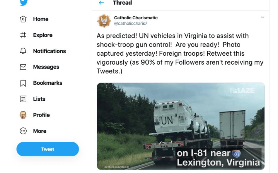 named “Catholic Charismatic” tweeted a photo on Dec. 31 showing UN armored