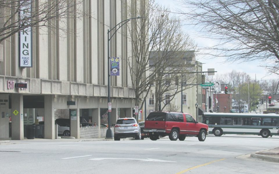 In some respects, the two streets that flank Elm — Greene to the west and Davie to the east — are the service roads that support downtown Greensboro’s vital corridor: The pedestrian-friendly hum of commerce, dining, shopping and leisure that courses up and down Elm is made possible by a collection of back-end parking garages that allow auto-dependent visitors, workers and residents to come in and out of the center city with ease.