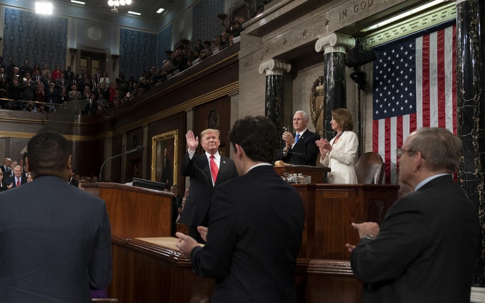 “Think of this capitol; think of this very chamber,” Trump told the white-clad Democratic women of the House, “where lawmakers before you voted to end slavery, to build the railroads and the highways, and defeat fascism, to secure civil rights and to face down evil empires.”