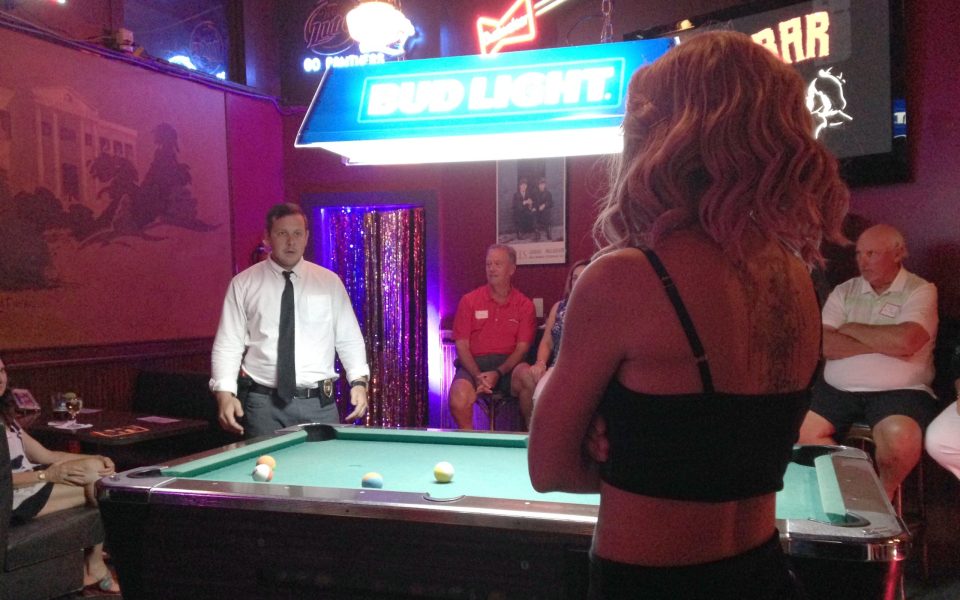 I hadn’t experienced immersive theater before, but it was fun to constantly look around to keep up with the story. A few of the characters even ordered drinks from the bar.[pullquote]Visit Gatsby’s Pub at 1157 Burke St. (W-S) and find Spirit Gum Theatre at spiritgumtheatre.com or on Facebook. Catch Bunker Dogs Improv’s next show on Aug. 12 at 8 p.m. at the Winston-Salem Theater Alliance.[/pullquote]
