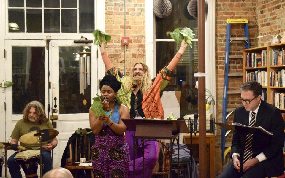 Local artist and musician Gary Heidt created the festival in New York in 1996 and the couple brought it to Greensboro when they relocated nearly three years ago. Heidt and Chopourian are members of the Van Reipen Collective, a group that curates imaginative interdisciplinary works for the stage and site-specific interactive performances, and the stewards of Monday evening’s event. The annual festival began in the Glenwood Community Bookshop on March 17, merging local experimental music, spoken-word poetry and improvisational performance art.