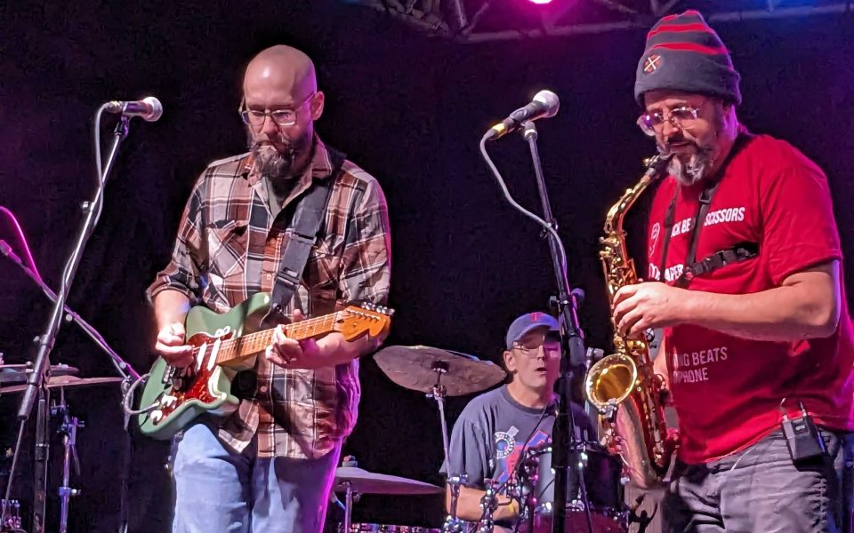 Featured photo: Yam Yam’s Tom Fuller on guitar and Jason Mescia on sax at Cohab.Space in High Point on Sept. 22. (photo by Beckett Clarey)
