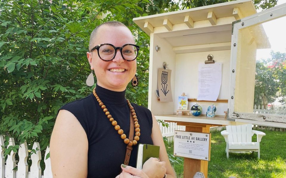 Featured photo: Greensboro artist Ash Hein poses next to a Free Little Art Gallery in Washington DC. (courtesy photo)