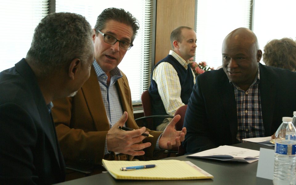 [Photo: Derek Ellington, right, is one of the members of the search committee.]