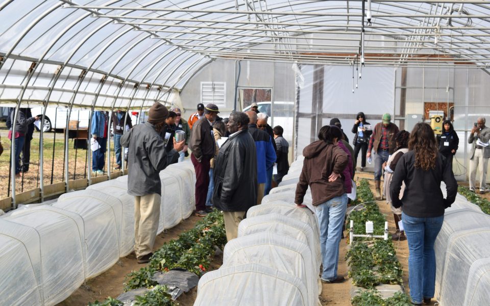 Through an obscured sky, the early spring sun hung high as two dozen or so predominantly black farmers gathered around the strawberries Sanjun Gu, his colleagues and graduate students tend to on Tuesday afternoon, a day of learning that ended on fertile soil, just the way they like it.