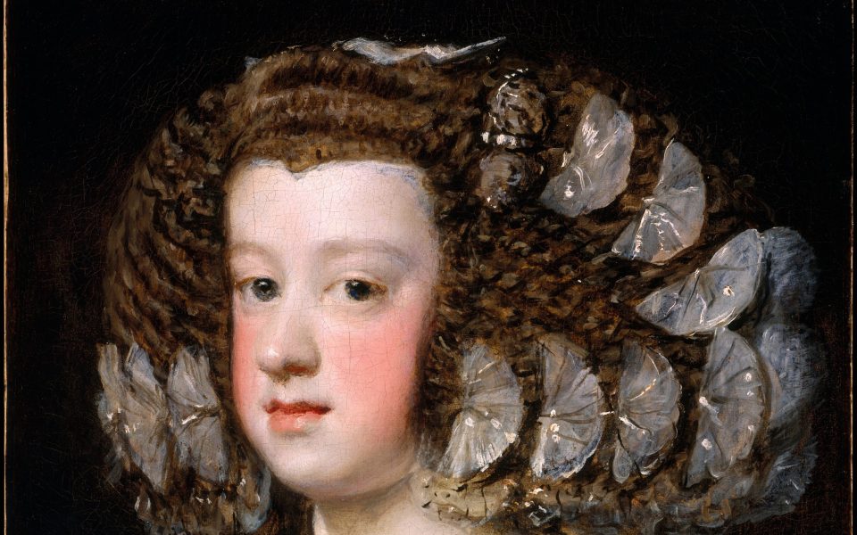 • “María Teresa Infanta of Spain,” by Velázquez in 1654 or so, depicts the daughter of King Philip IV of Spain, who would six years later marry Louis VIV, who was her first cousin. Thanks to the Metropolitan Museum of Art’s public-domain collection.
