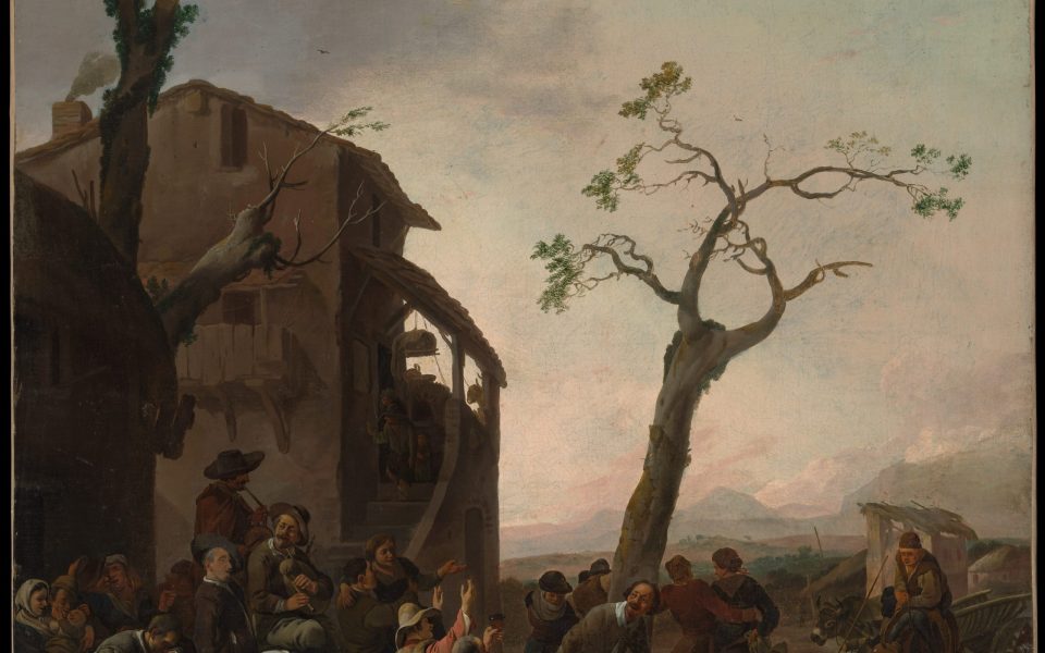 - Johannes Lingelbach’s 1651 work “Peasants Dancing” is obviously a precursor to the disco era. Thanks to the Metropolitan Museum of Art’s public-domain collection.