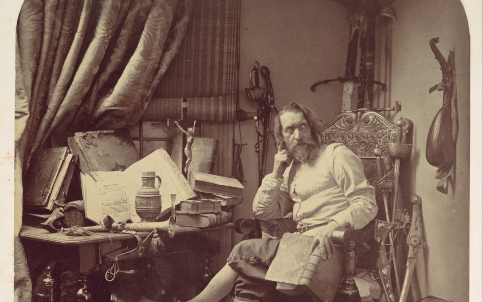 • Tonight’s featured image is a staged photograph, “Don Quixote in His Study,” shot in 1857 by William Frederick Lake Price. Taken from the Metropolitan Museum of Art’s public-domain collection.