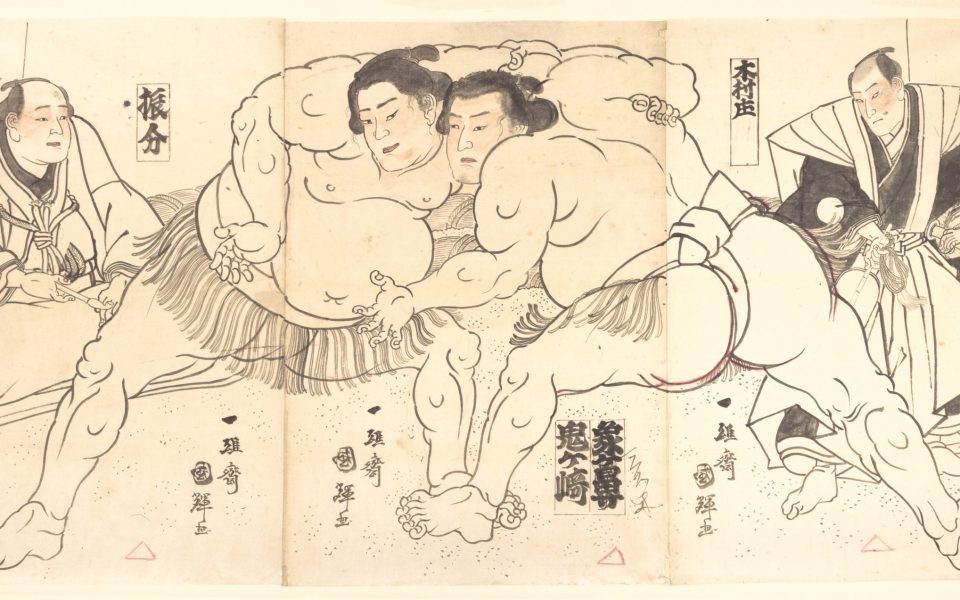 - From the Metropolitan Museum of Art‘s public-domain collection, tonight we’ve got “Sumo Wrestling,” a 19th Century work by Utagawa Kuniteru .