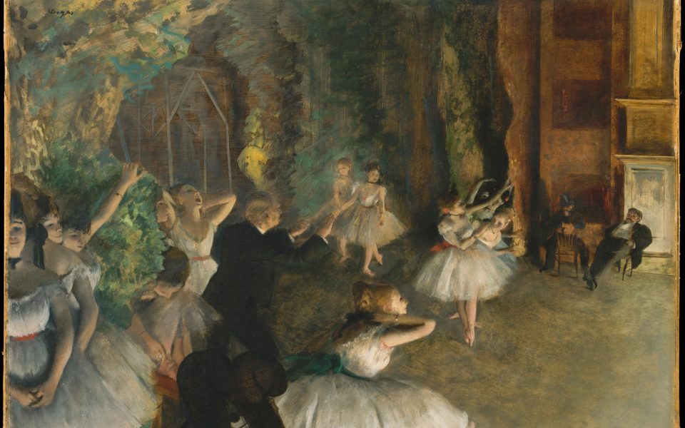 - I’m getting my public-domain images from the Metropolitan Museum of Art in New York City these days. We just call it “the Met.” Tonight we’ve got “The Rehearsal of the Ballet On Stage” — by Edgar Degas, 1874.
