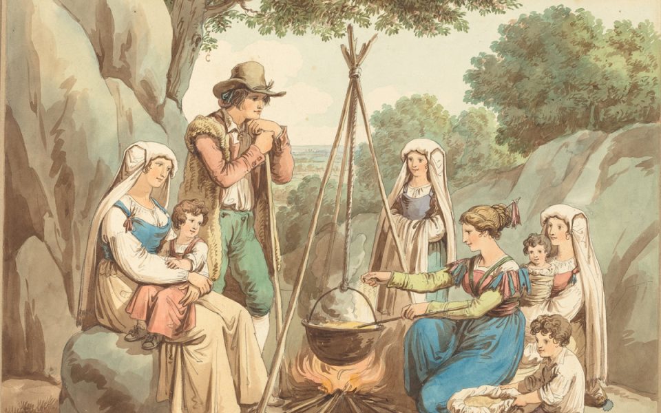 - Tonight’s featured image is “A Peasant Family Cooking Over a Campfire,” by Bartolomeo Pinelli, undated. Thanks to the National Gallery of Art‘s public-domain collection.