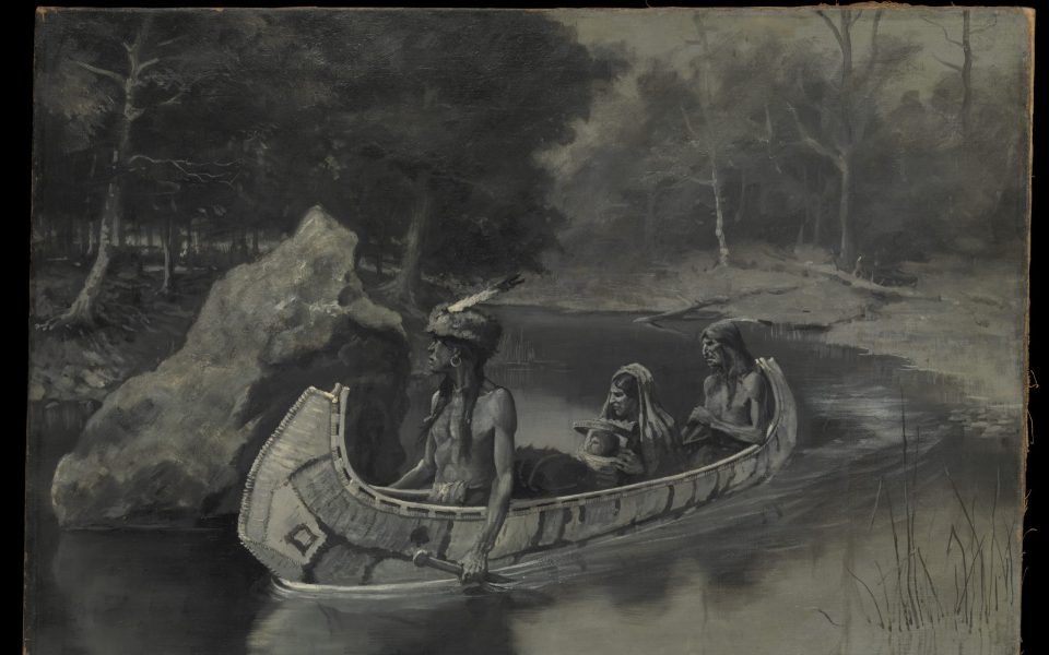 - Tonight we’ve got a Frederick Remington from 1889, “Pitched It Sheer into the River… Where It Still Is Seen in the Summer.” Thanks to the Metropolitan Museum of Art’s public-domain collection.