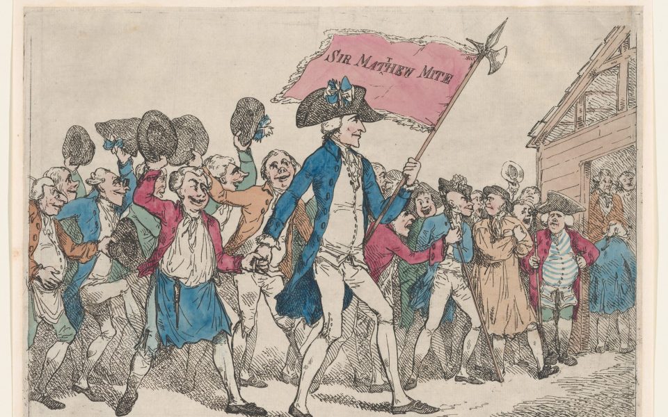 - From the Metropolitan Museum of Art‘s public-domain collection, tonight we’ve got “Bostonian Electors of L-Shire,” an etching from 1790 by Thomas Rowlandson.