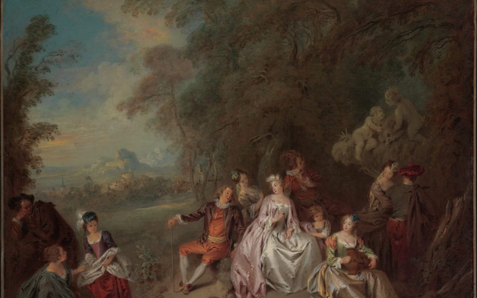 - From the Metropolitan Museum of Art‘s public-domain collection, tonight we’ve got “Concert Champêtre” by Jean-Baptiste Joseph Pater, around 1734.