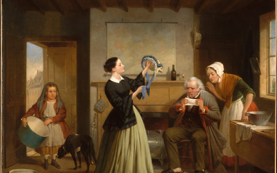 - I’m getting my public-domain images from the Metropolitan Museum of Art in New York City these days. We just call it “the Met.” Tonight we’ve got “The New Bonnet,” by Francis William Edmonds, 1858.