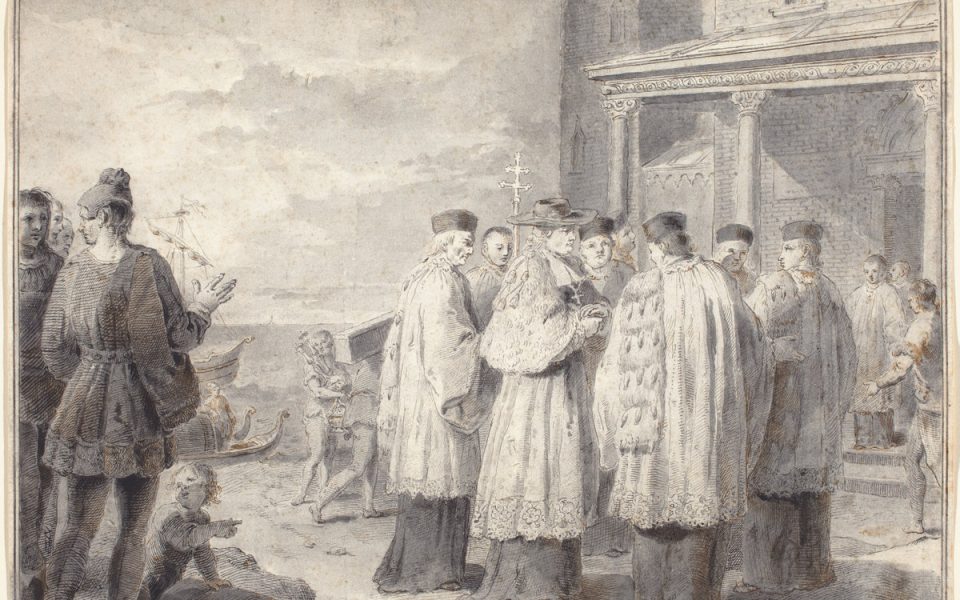 - Tonight’s featured image is a “A Venetian Scene,” a drawing by Pietro Antonio Novelli, undated. Thanks to the National Gallery of Art‘s public-domain collection.
