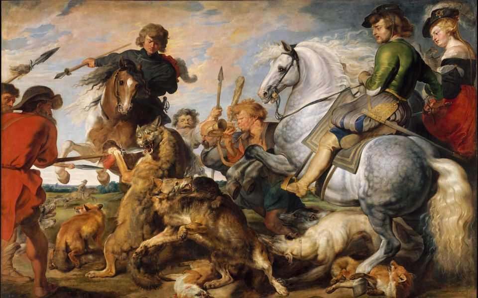 - From the Metropolitan Museum of Art‘s public-domain collection, tonight we’ve got “Wolf and Fox Hunt,” by Peter Paul Rubens, 1616.