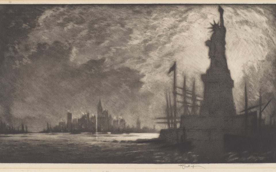 - I’m changing the feature photo on these missives from our tile to something more… I don’t know… abstract? I’m using public-domain images from the National Gallery of Art — one of the wonderful things our tax dollars pay for. This one is “Hail America,” a print by Joseph Pennell from 1909.