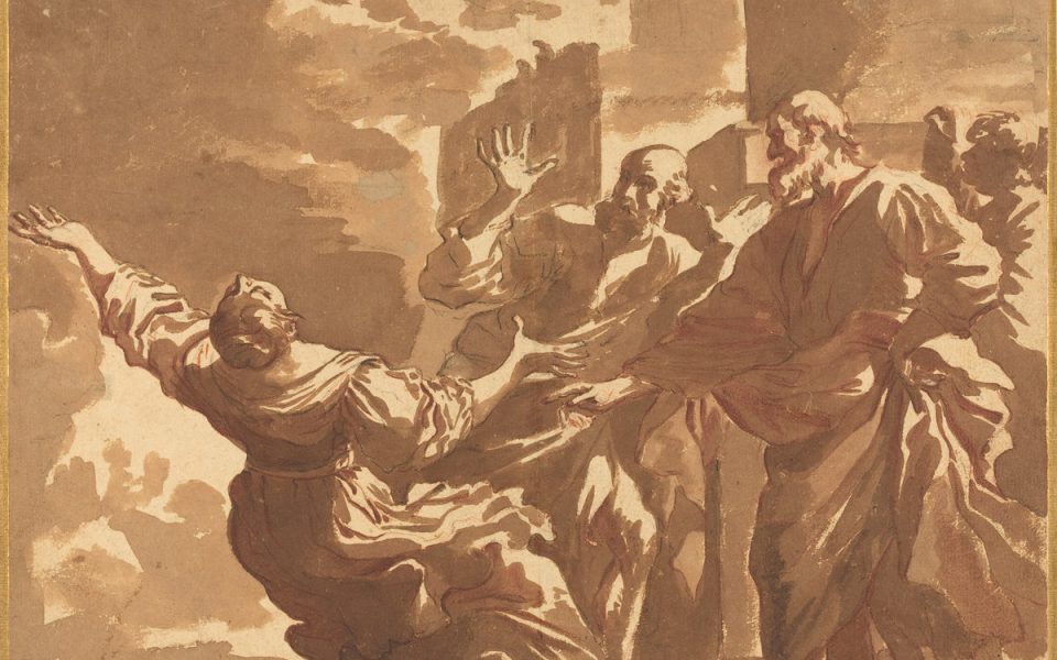 - Tonight’s featured image is “The Death of Sapphira,” by an artist whose name is lost to time, courtesy of the National Gallery of Art’s public-domain collection. Sapphira and her husband Ananias were punished for embezzling from Jesus.
