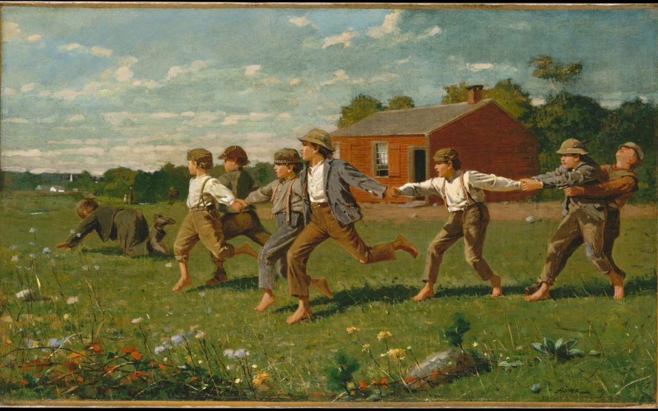 - For tonight’s featured image, we’ve got “Snap the Whip,” by Winslow Homer, 1872. I’m on something of a Homer kick right now, which is fine: His body of work is outstanding and his use of light and shadow rivals any artist of his era. Taken from the Metropolitan Museum of Art’s public-domain collection. And hey: The Met is now open on Fifth Avenue in NYC, if you’re in town.